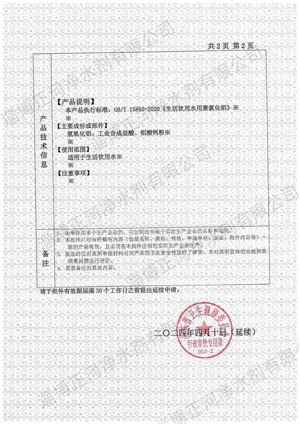 應用領域:該產(chǎn)品專用于生活飲用水的凈化處理,具有凈化效率高、沉降速度快、鋁殘留率低的特性。